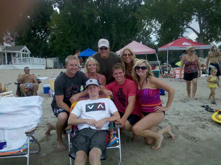 The biggest forced smile ever. I sat all day watching my family play in Lake Erie unable to stand up and join them.